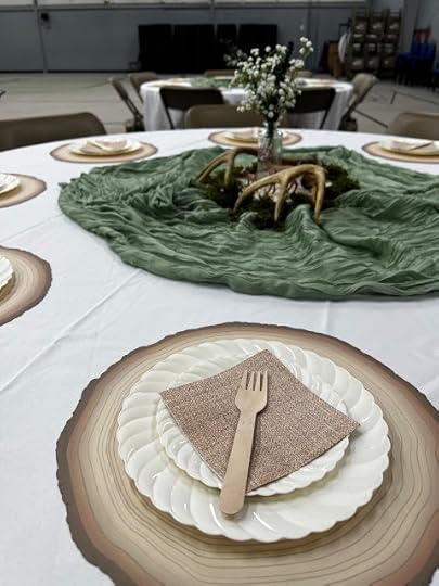 I loved the paper place mats that featured rings of wood. I asked one of the hostesses where she found them, and of course she said Amazon!