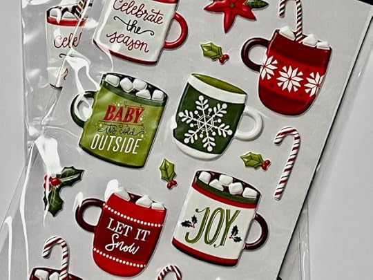 I always buzz by the ornament aisle at Hobby Lobby at this time of year since the teacup and teapot ornaments tend to sell out early. I didn't find any new tea-themed ornaments there last weekend, but I did find some cute stickers that I think many of use would enjoy using to seal our Christmas cards or decorate packages this year.