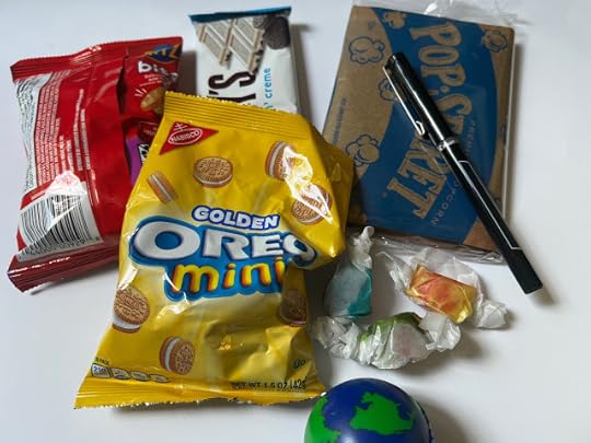 Some fun snacks. (I've already eaten the miniature Reese's cups.)