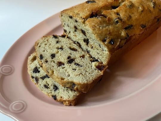This weekend, I decided to use up some dates and dried cherries I had sitting around, and the result was this Cherry-Date-Pecan Tea Bread, which I really enjoyed! I took some to Sunday school for our class breakfast yesterday, and I popped the leftovers in the freezer to slice up for future teatimes.