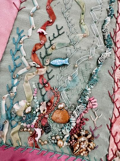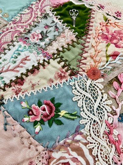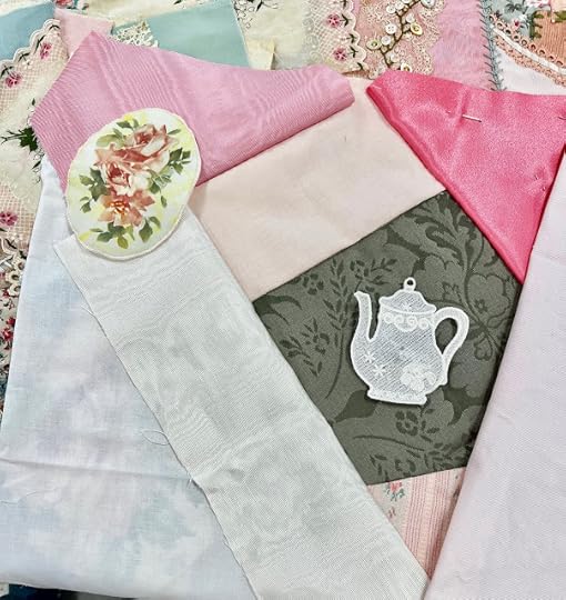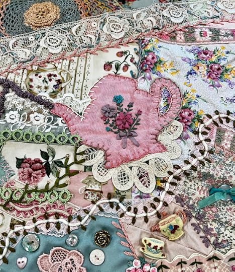 I've made a new rule for myself: I can't start a new craft until I complete an unfinished one. For that reason, I pulled out my old crazy quilt squares, which have been sitting in a hat box for several years. It was like revisiting an old friend when I realized, "Oh yeah, I stitched a teapot on this one!