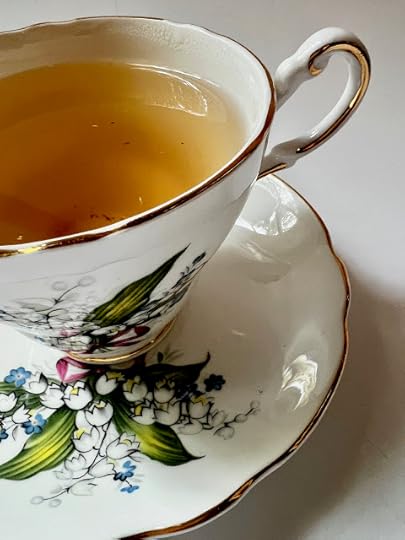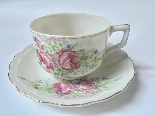 Brenda was even shorter than me, and I'm just five two, but she was considered a redheaded firecracker by those who knew her. She got things done and was a devoted member of many national societies like the DAR, where she was often a leader. As I looked around at her teacups, I caught sight of a pretty and *petite* one with roses on it, and I knew that the small cup would remind me of my petite but powerful friend.