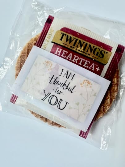When I got home, I was about to toss my gift bag when I felt something inside that wasn't newspaper. It was a stroopwafel cookie and a tea bag, so basically, Brenda's family gave us all a tea party as her parting gift. Can you think of a better way to say goodbye to your friends? I can't, and I look forward to telling her "thank you" when I see her again in Heaven!