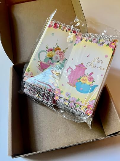 Tea friend Margie recently sent me a link to some cute little notepads she'd spotted on Amazon, and I liked the look of them so much that I ordered them for my little neighborhood friends who like to stop by for tea and crafting!