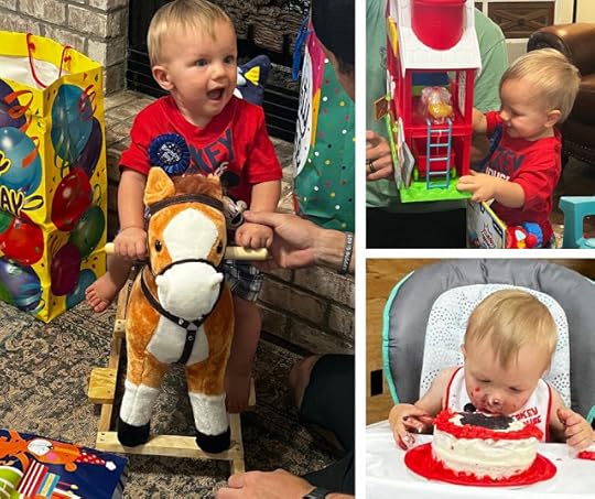 My great-nephew, Ezra, turned one last week, and on Saturday, the family gathered at my sister's house in Tallapoosa for a big Mickey Mouse-themed birthday party with lots of family and friends! The birthday boy handled all the hoopla quite well and enjoyed opening presents and digging into his "smash cake."