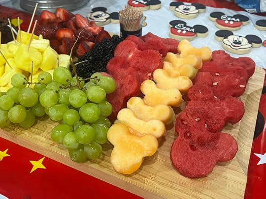 He loves his Mickey Mouse cartoons, so Mickey was prominently featured in the food and decor, including the cake made by one of his grandmothers.