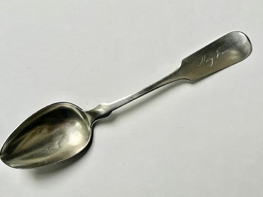 I also polished a large silver serving spoon Alex presented me with, and it, too, came via his mother. It's engraved "Mary Irvin," and I learned from a family history book that she passed away in 1861.