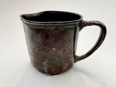 Another piece I've started polishing (so much that I actually ran out of silver cream!) was Alex's baby cup! I'm thinking of having a silversmith repair it by getting out the dents and dings, but first, I wanted to make sure it can be polished.