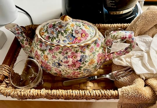 One day, Adelaide was very carefully holding the lid on the teapot while she poured herself some more tea (and if I should ever chip a teapot in service to entertaining children, so be it!), and it occurred to me that I should get one of those little drip catchers that holds the lid on, so I'll be purchasing one of those soon. I also want to introduce the kiddos to my little "lemon bird" that squeezes lemon into the tea. They've already used a tea strainer but didn't seem particularly impressed by that. I haven't entertained very young children in years, so what am I forgetting? Any suggestions on gadgets or tea wares to make tea even more fun for little ones? I'm enjoying our teatimes even more than they are!