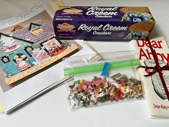 The other night, I got home from dinner with a girlfriend and had a package from Hawaii waiting on my doorstep. The surprise comes courtesy of my tea-lover friend Lani F., and I am so excited about all of these carefully curated treats she assembled for me! There are several folders of fun info I'm still reading, and Lani saw one of my past posts about tea-themed puzzles and sent some printouts of puzzle suggestions as well as this bag with a small puzzle inside. It will be perfect to put together the next time my young neighbors come for tea.
