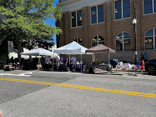 I'm part of a group of local writers called the Hometown Novel Writers Association, and as a member, I was one of some thirty-five authors who set up shop in downtown Newnan Friday evening to kick off Litfest, a literary-themed weekend sponsored by our Newnan Carnegie Library Foundation.