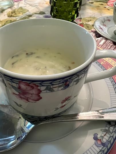 Our tea started with this Creamy Chicken Wild Rice Soup. Knowing I would be having afternoon tea at 4 p.m., I had skipped lunch. Considering all the food we got, I should have skipped breakfast too! I was quite hungry by the time we arrived, and this soup was fabulous with its thick, creamy texture but not so much of it that it prevented me from enjoying the rest of the meal.