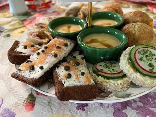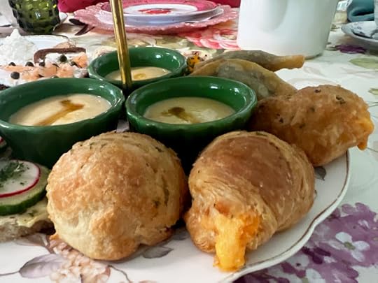 And these are the Pimento Cheese Gougeres. The sandwiches were plentiful and tasty. And I couldn't help thinking of that old adage about how "we eat with our eyes first," because my eyes were definitely impressed by the presentation here. I enjoyed all of the sandwiches, but the salmon and the cucumber, as always, were my favorites, although that flaky gougere oozing cheese was a close runner-up.
