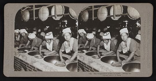 I've shared quite a few of the Library of Congress's stereographic images over the years, especially after I developed the skill of looking at them properly. (You can Google articles online that tell you the basics, but it's rather like looking out a window at the horizon and ignoring the windows themselves.) But when I discovered this LOC image the other day, published in 1902 and titled "The preparation of tea in Japan. Firing tea," I stared and stared but just couldn't get it to work for me.