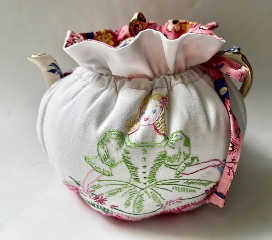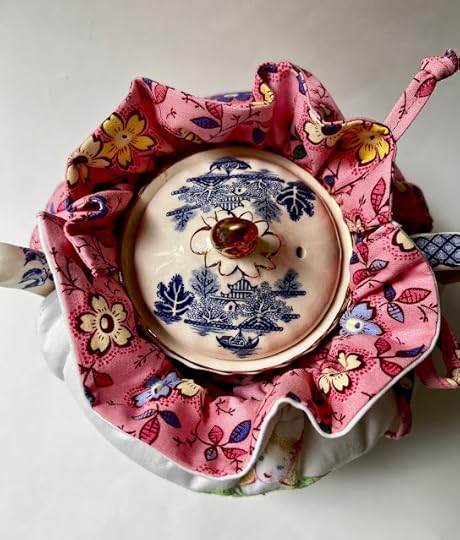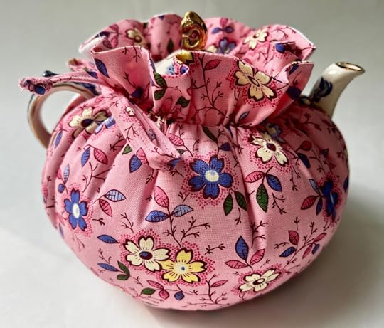 And here's the back. As I was auditioning teapots to get the honor of going inside this tea cozy, I naturally gravitated toward many of them with pink designs.