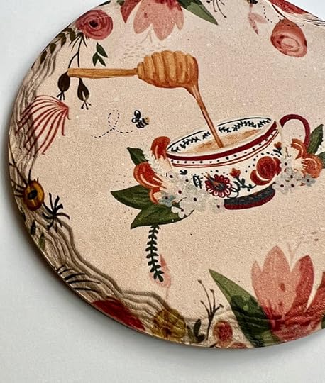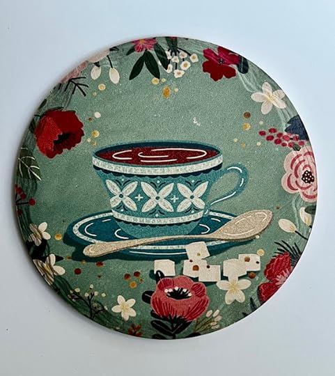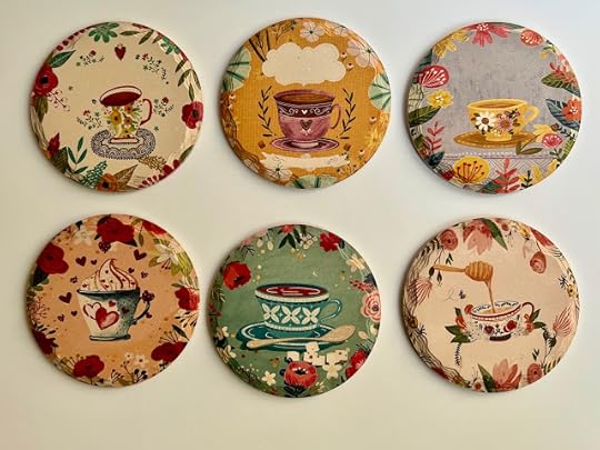 The funny thing was that it never occurred to me to look for tea-themed coasters. I simply wanted some ceramic ones, not thin paperboard coasters, so I began searching Amazon for ceramic floral coasters, and these are the ones that popped up!