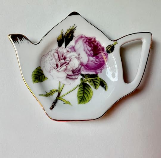I use tea bag rests to hold my single-cup tea infuser baskets, and this rosy one is a stunner!
