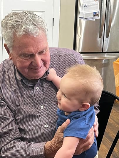 Daddy is in great health, has a lovely lady friend (someone our family went to church with years ago, which is a bonus!), recently took up pickleball, and was telling me something about "some elderly people" last week, so I'd say that at 85, he's doing pretty good. Here he is with his first great-grandchild, baby Ezra, who was born to my niece Cari and her husband, Blake, last July. Ezra is the star of the show at family gatherings these days.