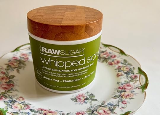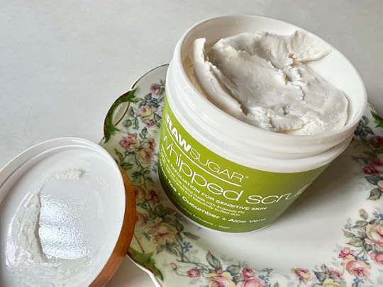 It's been a while since I've spotted any new cosmetics containing our beloved camellia sinensis as an ingredient, so I was delighted to come across this Raw Sugar Whipped Scrub with green tea, cucumber, and aloe vera at Kroger recently.