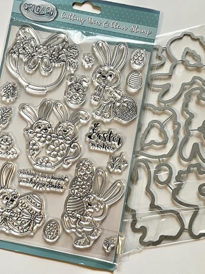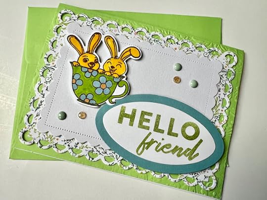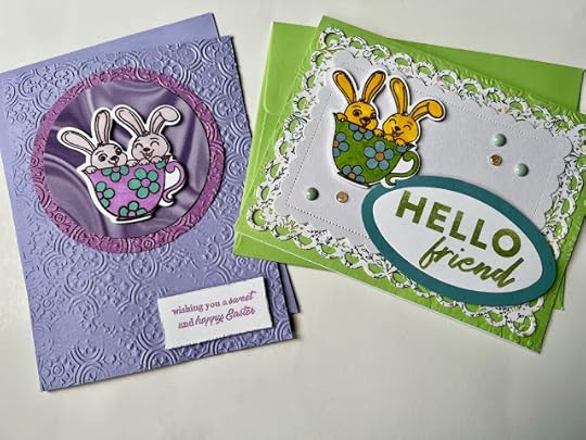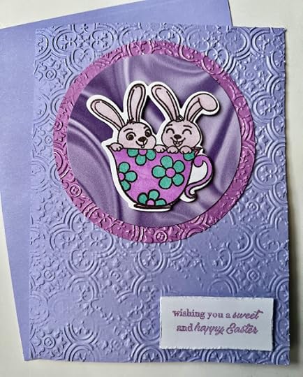 I used some stamps and dies I found on Amazon, the set here, which was a little iffy. I don't think the Origarch sentiments stamp as well as those in my Stampin' Up stash, but for just $9.99 for the stamps and dies, I'm happy to simply use the teacup and bunny stamps and pull the sentiments from my own stash.