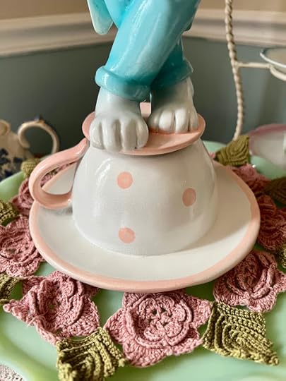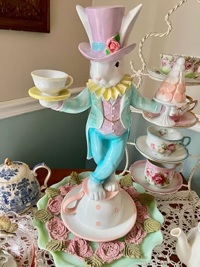 And even the way his little bunny paws are perched atop this teacup pedestal. He was just $16.99, which I thought was a great price for such a charming piece that's more than 14 inches tall!