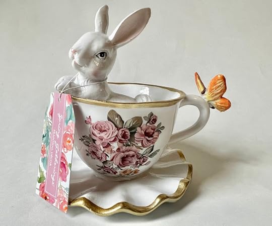 I should have labeled the Wednesday giveaway as #1 (it was a last-minute idea), but here we go with giveaway #2! I do believe this is the first time I've offered an Easter item as a Valentine's Week giveaway, but hey, it's cute, and a tea lover definitely needs to own this sweet piece, which I found at T.J. Maxx this week. It's the size of a small teacup and is made of some sort of heavy resin or plastic, I believe. I will package it carefully so that it gets to you in one piece, but after that, the bunny ears and the butterfly are YOUR responsibility, okay? If you'd like to win it, just sign in to your Blogger and/or Google account to leave an "Enter me" to this post by 7 a.m. EST on Monday, February 12, and you'll be entered to win. You can also enter on the Tea With Friends Facebook page here, or you may send me an email at angelamcrae at charter dot net. US only, please. And good luck!