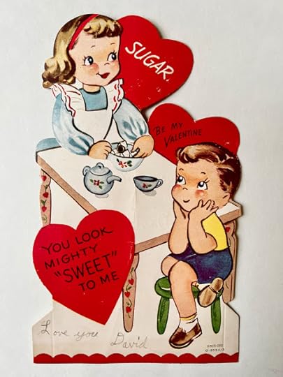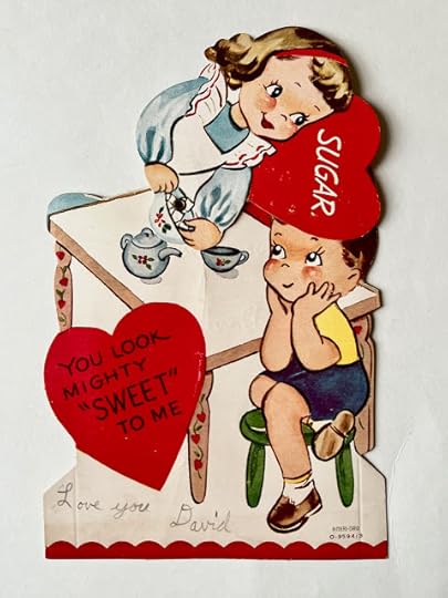 I'm also continuing my tradition of sharing photos of my new tea-themed vintage valentines, which aren't part of the giveaway but simply recent additions to my collection. This postcard-style Hallmark valentine I found on Etsy looks newer, from the 1960s or 1970s versus the 1940s or 1950s, and I love it!