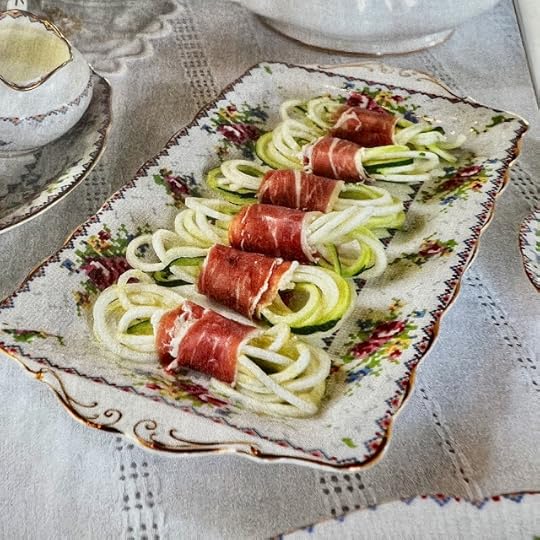 The recipes in this article all include a sewing theme, like these Vegetable Skeins made of spiralized zucchini, herbed cheese spread, and prosciutto. Clever!