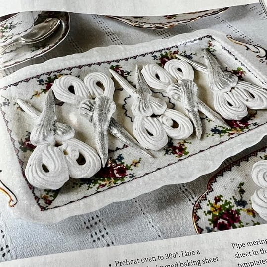 And the pièce de résistance? These Scissor Meringues with silver luster dust on the "blades"! Sewing sisters, is that not the coolest thing you've ever seen for a tea party? Now to see if I can make them …