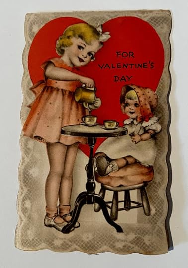 And for my final vintage valentine this year, I thought you might enjoy seeing this lovely old Hallmark valentine with a lace-patterned edge. Although it does say Hallmark in tiny print on the back, there's no copyright year I can detect, but I do believe this is a very old valentine.