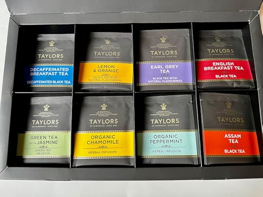 I've been sipping loose teas from Taylors of Harrogate for years, usually purchased at tearooms or found in the wild (at T.J. Maxx). This week, I'm sampling some of their teas in tea bag form thanks to a much-appreciated Christmas gift from my niece Madison!