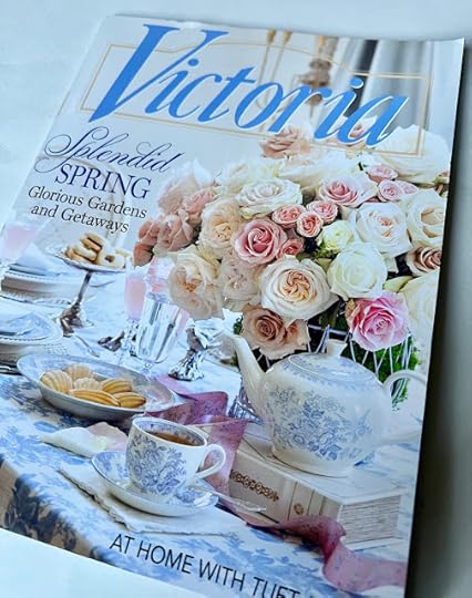 I am so glad I subscribed to Victoria magazine last year, because recent issues have been so, so lovely! The soft color palette on the March/April issue's cover immediately caught my eye when it arrived Saturday, and I was just about to read it around 8:30 p.m. when the power went out! There was no storm, the rain had stopped, and the EMC said they had been notified of the outage. Our entire street was dark, so we knew it wasn't just us. An hour passed, so I read a book on my Kindle. Another hour passed, and I read some more. The third hour? I turned on the flashlight app on my iPhone and read this magazine! (The power finally came back on after midnight, and we never learned what the problem was.)