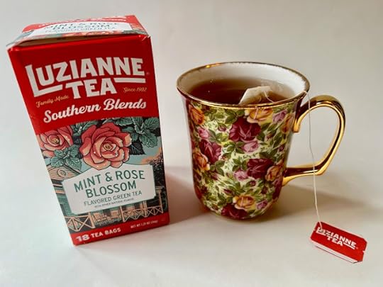 After polishing off a box of that tasty Honeyed Peach Herbal Tea from Luzianne that I tried a few weeks ago, I found myself curious about their Mint & Rose Blossom blend, so I decided to give it a try.