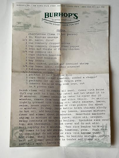 And this collection of recipes did not disappoint! I love seeing things like this old paella recipe from Burhop's Quality Seafood in Chicago. Typewritten, even!