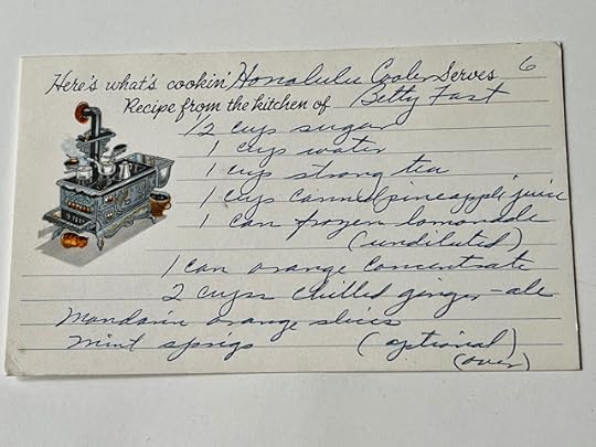 Finally, this handwritten recipe for "Honolulu Cooler" is basically a pineapple-and-citrus punch recipe that includes tea! I haven't made it yet, as I don't have a need for a big batch of punch anytime soon, but I decided to share it here in case any of you are willing to give it a try. I love reading these old recipes, and I hope you've enjoyed seeing some of them too!