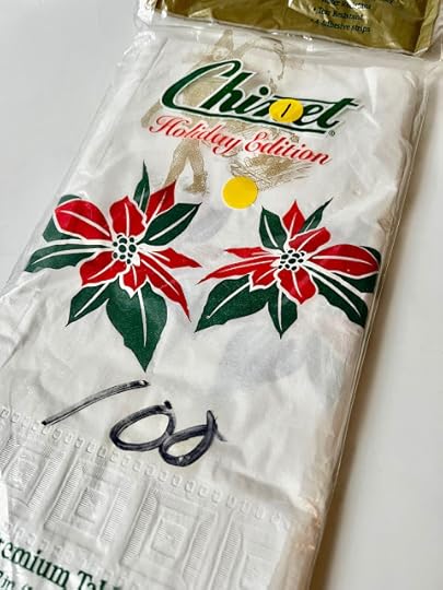 In looking for vintage Christmas tablecloths on eBay (the ones I want are so expensive!), I've noted that even old paper tablecloths are becoming collectible. Is a Chinet tablecloth collectible? I dunno. But I like the poinsettia design, which could also be a craft supply for decoupage one day if I decide not to use it as a tablecloth.