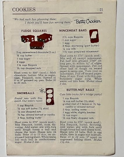 I also found an old sheet of recipes that I decided I will not be cutting up. Fudge Squares made with Bisquick? I'll be trying that between now and Christmas.