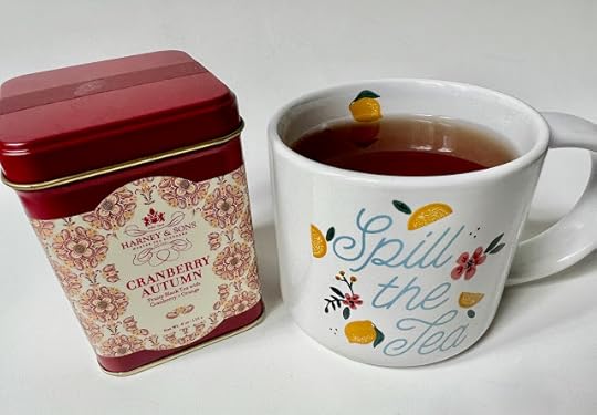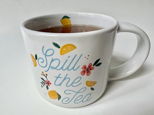 You know how you get a new car and then suddenly, you see that same car everywhere you go? New words are like that too. And earlier this year, while editing a book for a British client, I came across a sentence about someone "spilling the tea." From the context, I knew that the phrase was not, in fact, about sloshing tea all over the place but rather about gossiping. Kind of a fun phrase, right? Soon after that, I saw a blog post titled "Spilling the Tea," and before I knew it, "spill the tea" was popping up everywhere. This weekend, I was at Hobby Lobby when I saw the phrase on a mug, which of course I had to get (and I used it to celebrate my first cup of The Official Fall Tea of Tea With Friends, Cranberry Autumn by Harney & Sons).