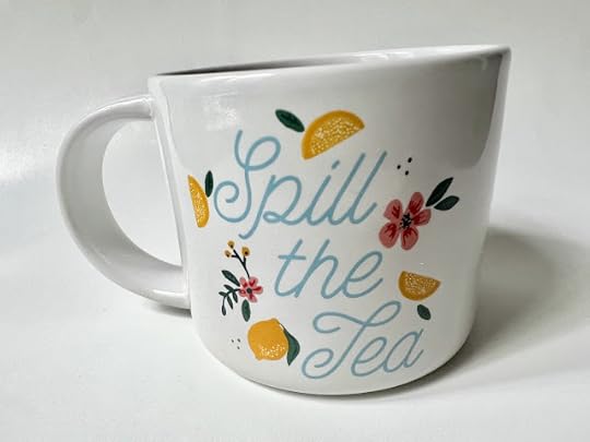 And the pretty graphics are on the back side as well, which isn't always the case with mugs like this. But today I'm curious: Have you all heard the phrase "spill the tea" before? If so, do you remember where you first heard it? Unique words and phrases have long fascinated me, and that goes double for "spill the tea."