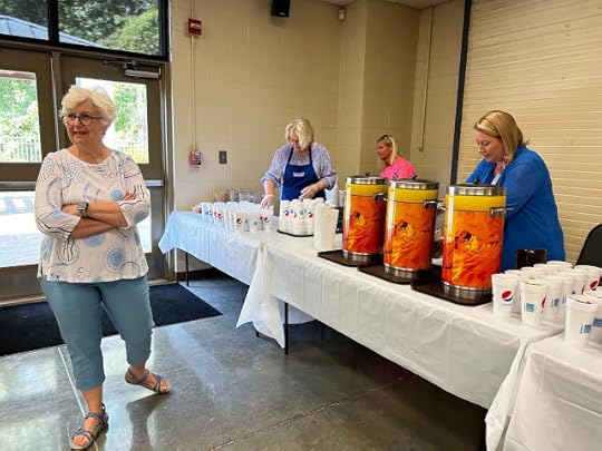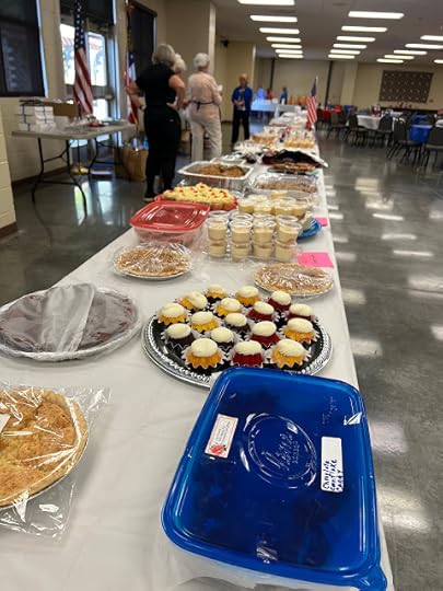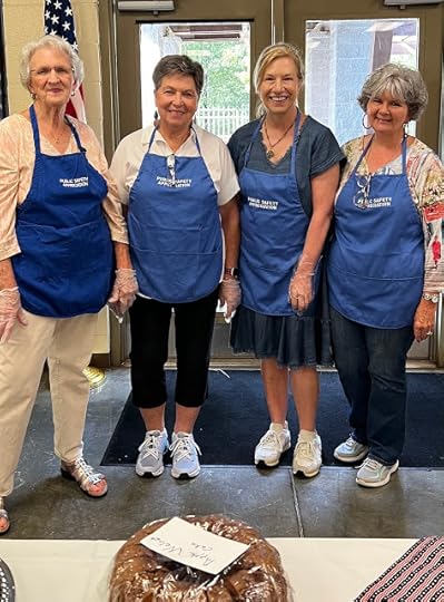 For several years now, I have been a volunteer at my community's Public Safety Appreciation Luncheon. We prepare and serve a hot meal to several hundred of our local law enforcement officers (LEOs), and local citizens donate dozens of homemade desserts that fill table after table in the dining hall at our local fairgrounds. Here I am at yesterday's 25th annual luncheon, where I served alongside friends Pat, Ruth Ann, and Lisa, among many others.
