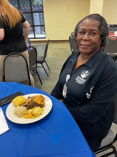 Many of the officers like to browse all the offerings before making a decision. One rather robust-looking gentleman surprise his buddy by getting just a tiny spoonful of banana pudding. "What are you doing?" asked the man. The big guy responded, "I'm pacing myself." Ha!