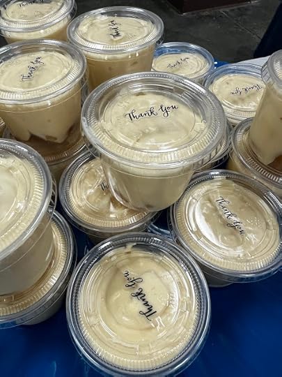 Someone had packaged individual banana puddings in cute little plastic cups with "Thank you" stickers on top. What a nice touch!