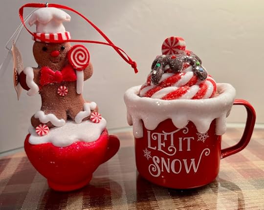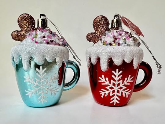 So I've been stalking Walmart in search of they are selling this year. This is week two of going to Walmart on the weekend, and I still haven't spotted them, but I did come across two new cup/mug ornaments, and these $1.98 treats were a nice consolation prize after not finding the Santa mug ornaments. (I'm sure I will find them. I just haven't visited enough Walmarts yet, and worst-case scenario, I will order them if they don't show up soon.)