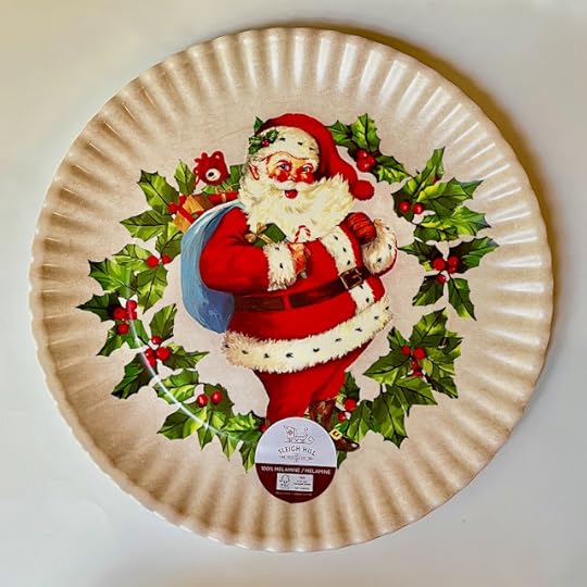 My final Christmasy find on Saturday was this 16-inch melamine tray from T.J. Maxx. I will probably save it for display, not for food use, as I think the vintage Santa design is so cute, and I love that the crimping around the edge makes it look like a giant paper plate. This was a fun $6.99 find. So please know that I am fully here for October, but if you want cute new (or old) things for Christmas, now is the time to think about getting them!