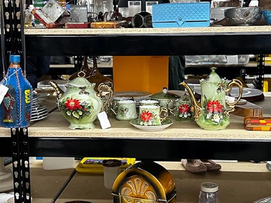 If we'd been in the car instead of flying, I would have definitely bought this Lefton China Christmas tea set. The price tag said $69 for all of it!