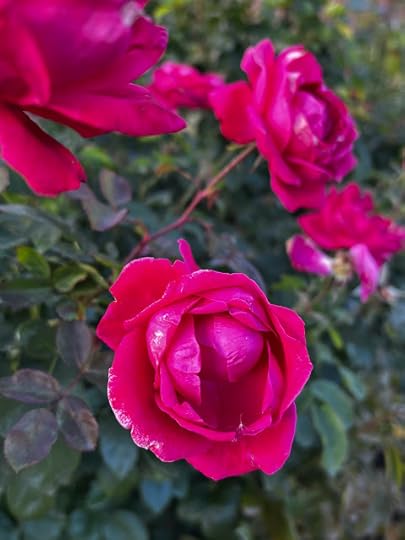 One more post and I'll stop prattling on about last week's trip to Wisconsin, I promise, but I just wanted to share photos of some of the roses (real ones and breakable ones) that I spotted on this visit. These were in the lawn next door to my stepdaughter's house, and when I asked if I could take photos, the couple who live there were so friendly and welcoming. I realized years ago that I absolutely love Midwesterners!