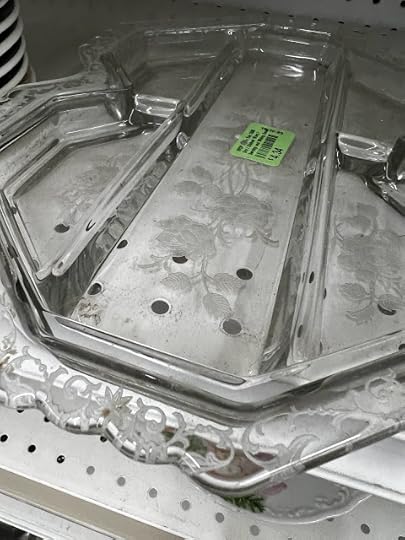 And this elegant and heavy-as-led glass platter etched with roses.