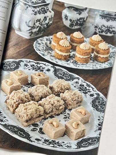 Inside, there are so many yummy-sounding recipes that I cannot wait to try. I’m planning to host several tea parties for small groups of friends this fall, and I’m going to need some gluten-free recipes, so those gluten-free treats are especially appreciated. In this spread, the Fig Crumb Bars and Mini Pumpkin Cakes aren’t gluten-free, but the Brown Sugar-Cashew Fudge is, so … yay!