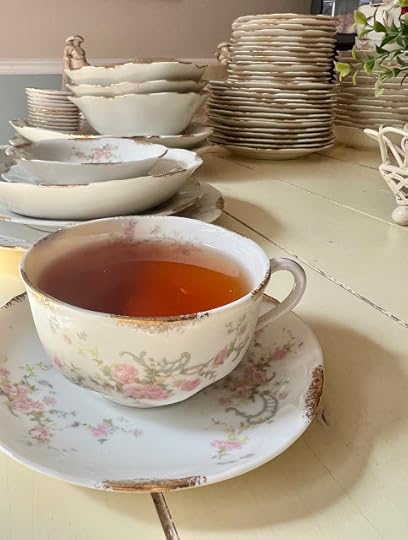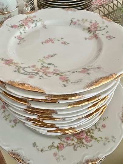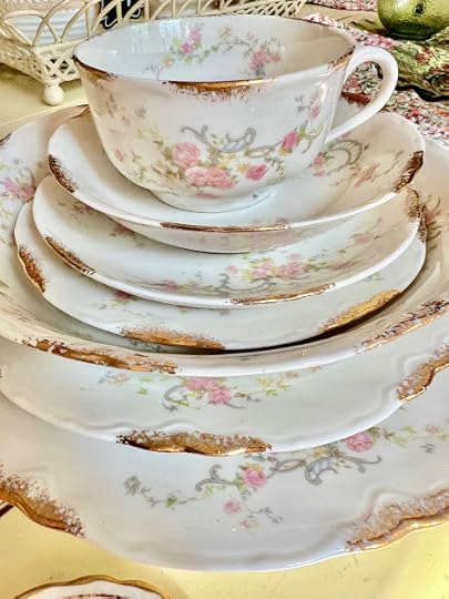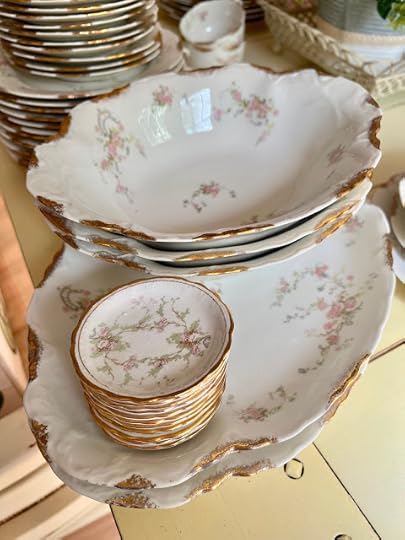 I wonder if perhaps someone received these dishes as a wedding gift and never used them. There are no chips, cracks, or crazing, and the gold accents are so perfect that I just don’t think these pieces were ever used. That is going to change. Oh, and in case you’re wondering, Daddy said he was at an antique mall where the booth was going out of business, so everything was half off, and he thought I might like these. He was right! (He and my mother used to be antique dealers, so I think he still has a good eye. He's eighty-six and just bought himself a new antique bedroom suite, which is lovely!)
