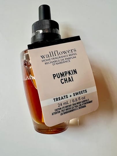 I saw this in a B&BW email, I believe, and decided to look for it the next time I was by our local store. It's $19.95 for the wallflower and $7.95 for the refill. Although you can find just about any scent imaginable, I was quite smitten by the thought of scenting my downstairs bath with pumpkin chai, and the fragrance is delightful. Bring on the fall!
